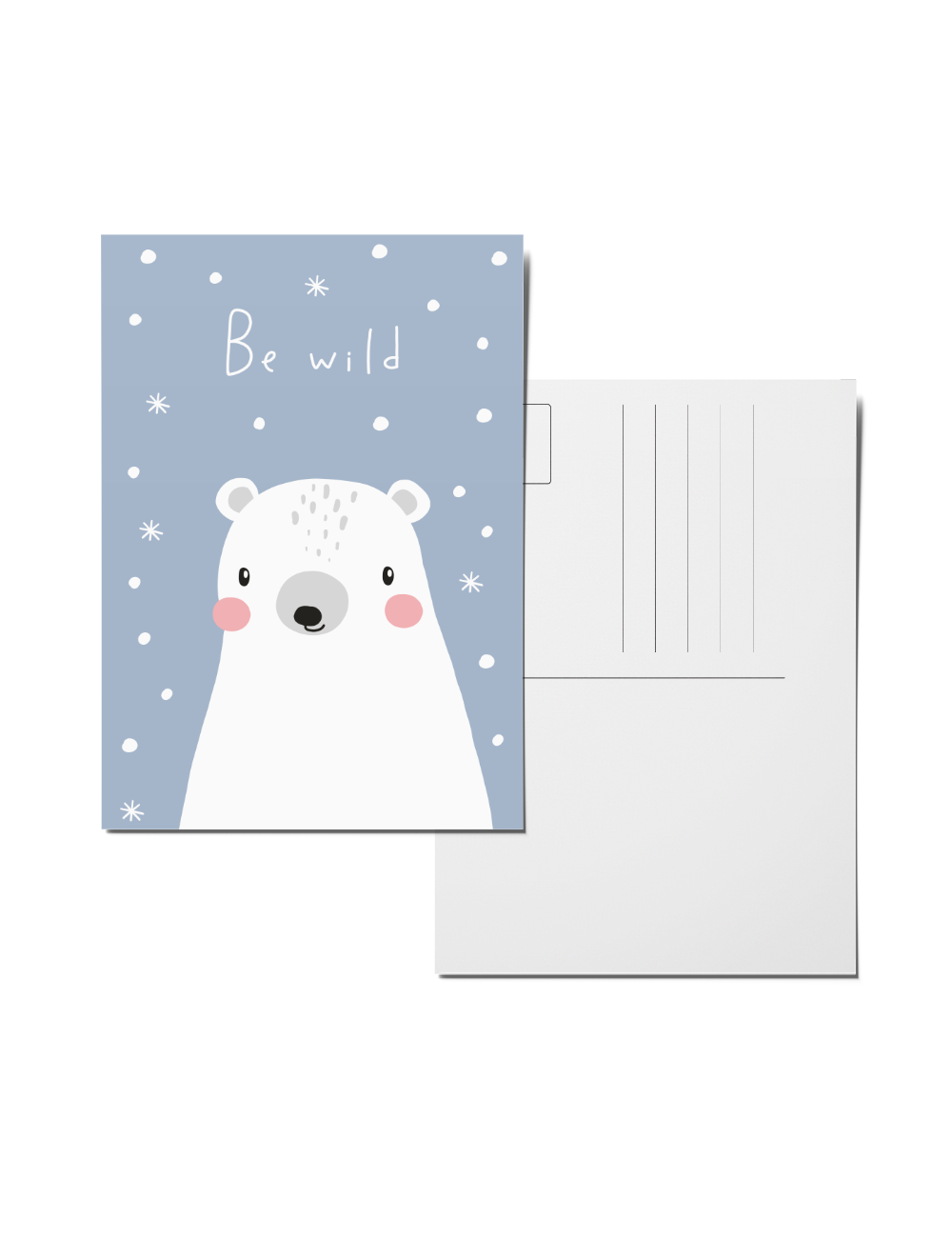 This children's postcard featuring a cute polar bear is a cozy and heartwarming insight into the Arctic nature. The friendly polar bear is illustrated with a soft and cute expression, making the motif perfect for children and joyful greetings.